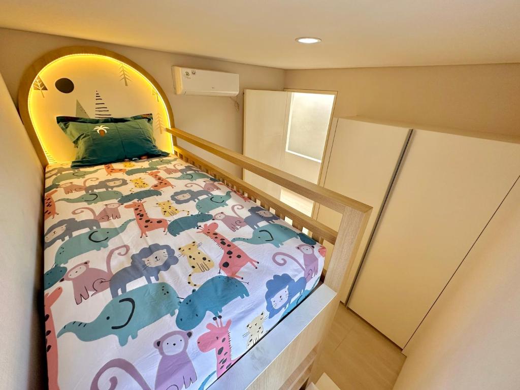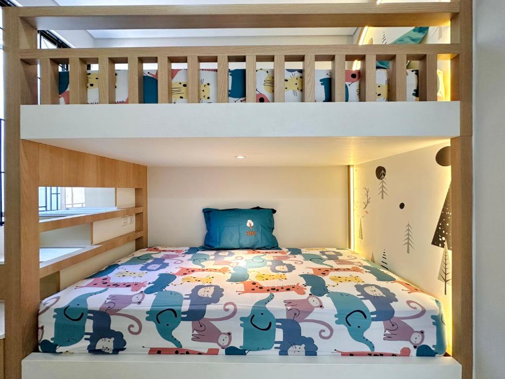 - Queen-sized bed, bunk beds for children or extra guests.