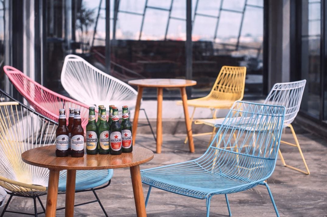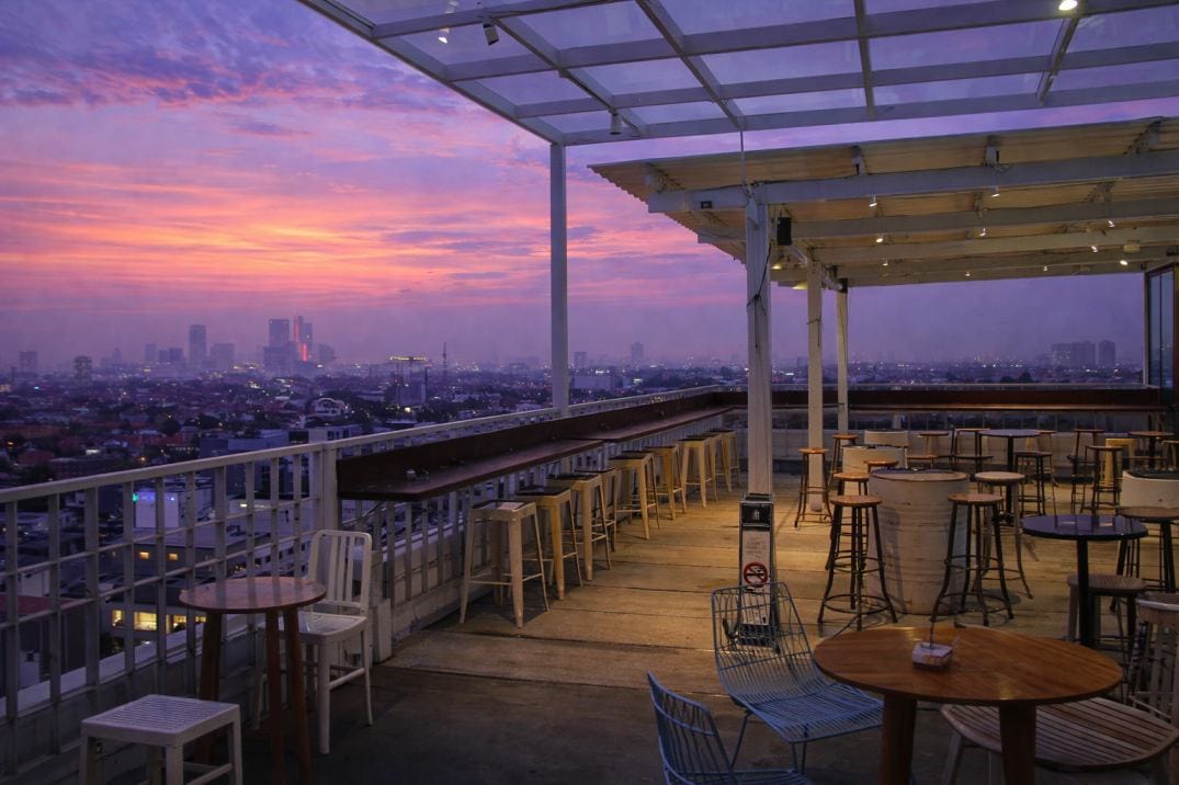 A relaxed rooftop spot where guests can unwind after a long day, enjoy casual drinks, and take in open city views in a laid-back atmosphere.
